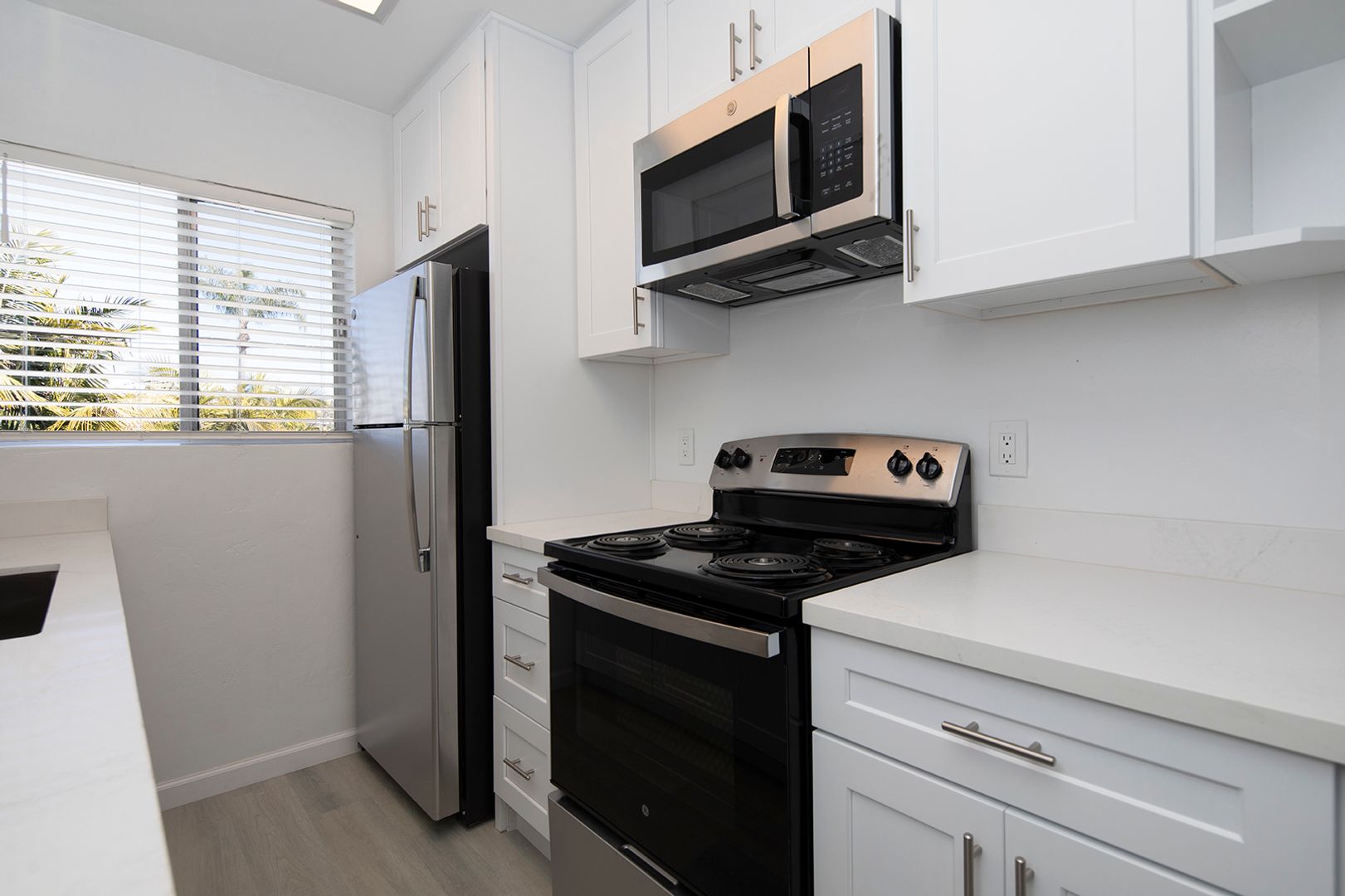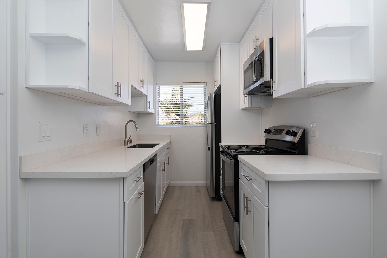 Catalina Pacific is located in one of San Diego's most desirable beach areas. Our charming one and two bedroom apartment homes are close to the beach, Mission Bay, Downtown San Diego, and the Gaslamp district while offering affordable prices. This particular unit has been beautifully renovated with LVP flooring, mirrored closet doors, quartz countertops, stainless steel appliances, and more.