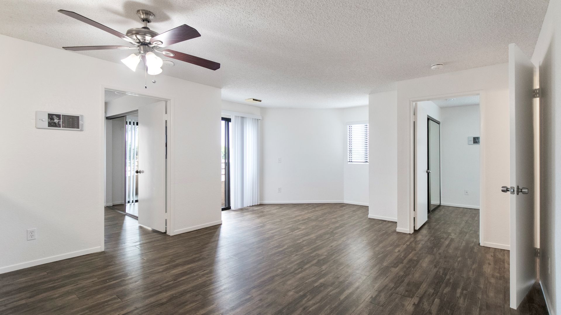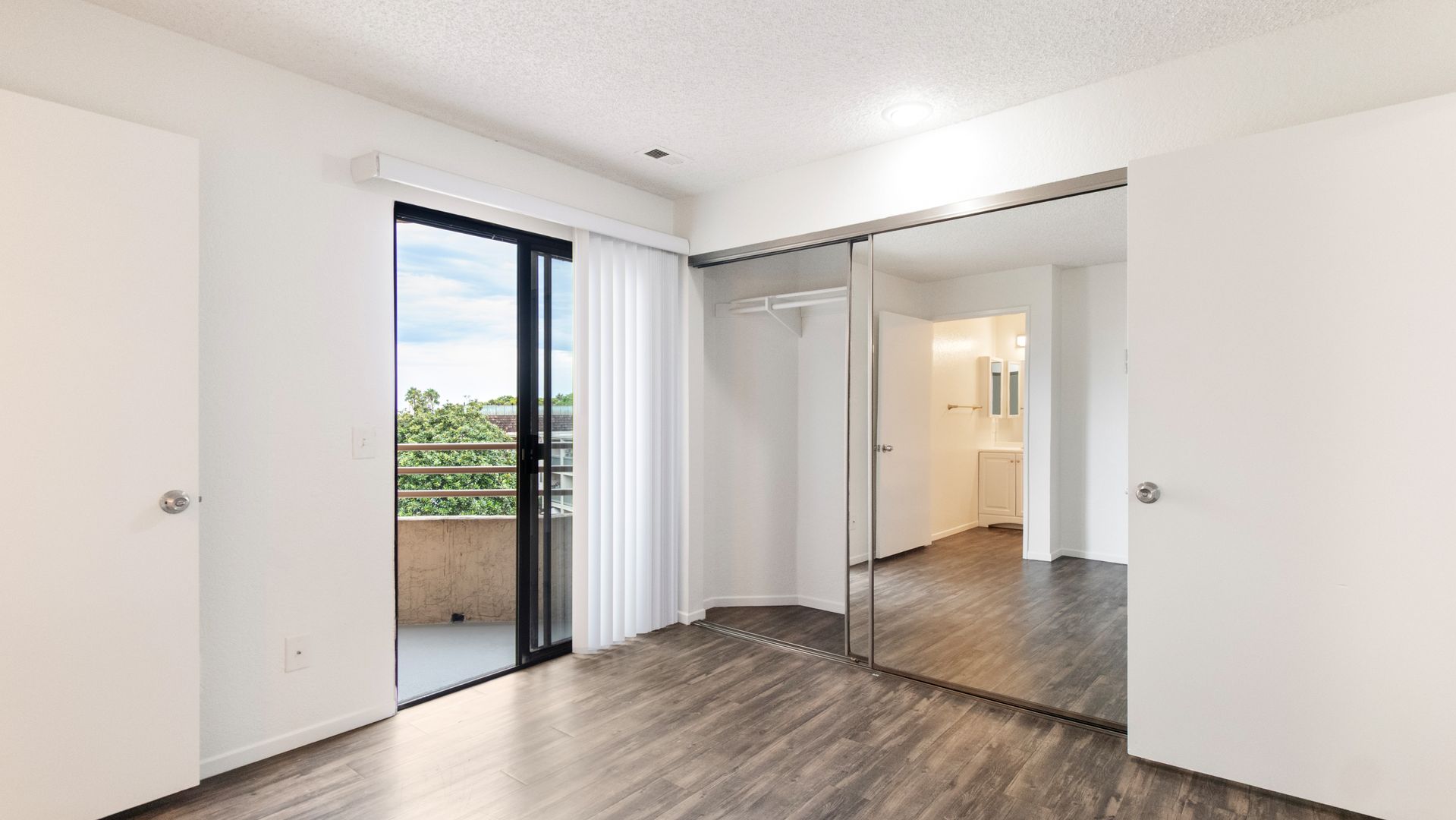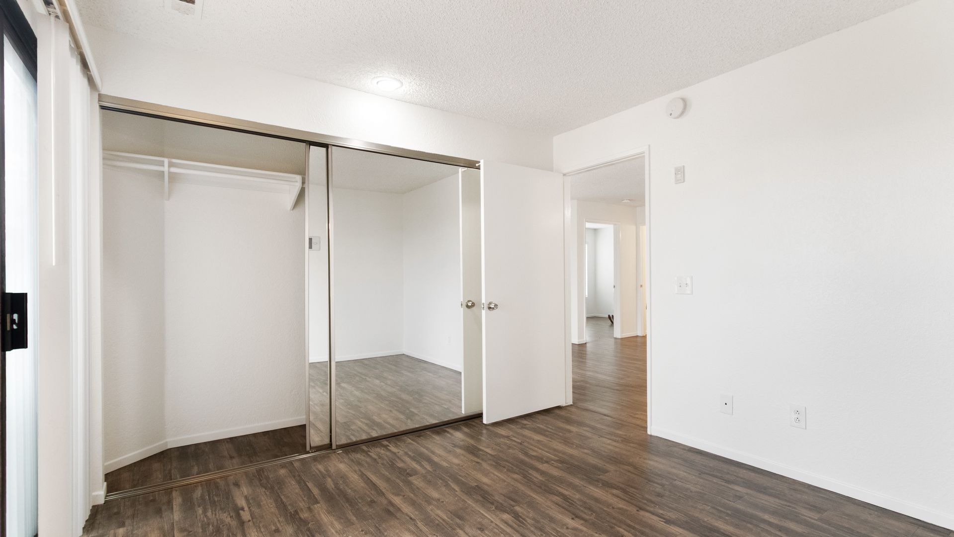 This particular apartment is on the second floor with dual primary bedrooms, two balconies, beautiful quartz countertops, stainless steel appliances including a dishwasher, vinyl plank flooring throughout, mirrored closet doors, and an assigned parking space. It's a must see apartment home! Call now to schedule a tour of our community.